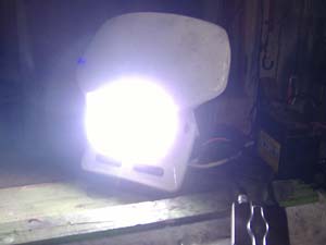 とりあえず点灯試験。 バッテリーに直付けしてみました。 恐ろしく明るい。 |