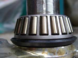 ベアリングをステムにはめ込んだら、グリスを塗りこむ。 指先でローラーをグリグリしながら中までグリスが入り込むように。 グリスは普通のリチウムグリス。耐水性があればなんでもいい。 かつて高価なものを使ったことがあるが、あんまし変わらなかったので安モンで充分と判断している。いいモンつかっても何年何万キロもほったらかしじゃ意味ないので、安モンでもマメにステムを抜いてグリスアップするとよろしい。 |